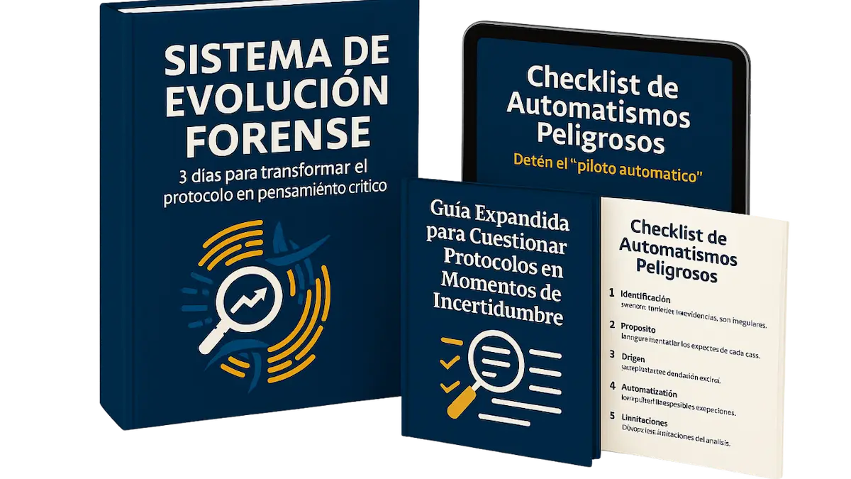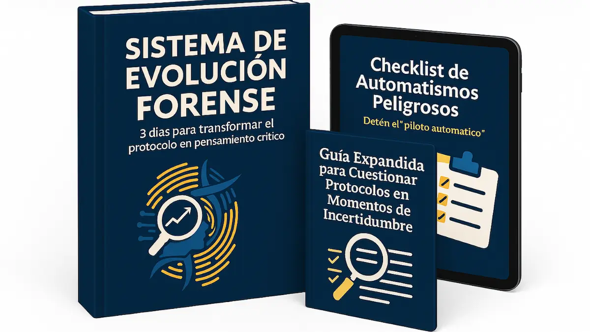 Este sistema no va contra los protocolos. Te entrena para aplicarlos con juicio, no con obediencia ciega. Aprendes a detectar cuándo estás cumpliendo por costumbre y cuándo estás actuando con sentido forense. Eso es lo que hace la diferencia entre un informe “cumplidor” y uno que aporta valor real.